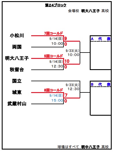 【更新】秋季東京大会一次予選_試合日時、試合場所決定